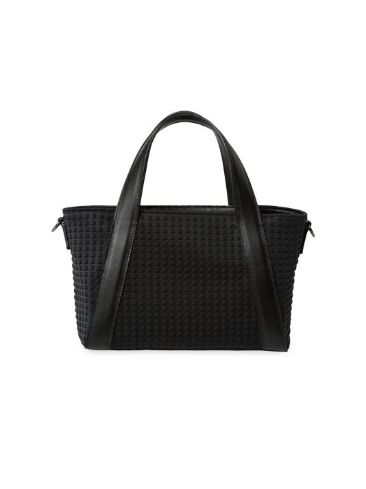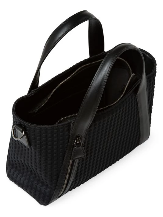 Akris punto’s Alexa zip tote is crafted of textured fabric with smooth leather trim and a removable shoulder strap.