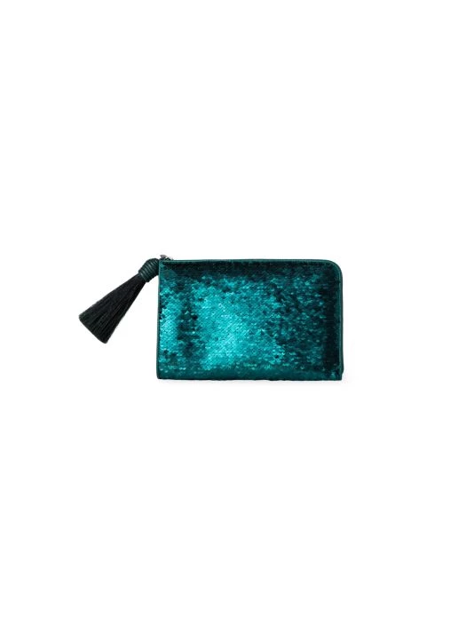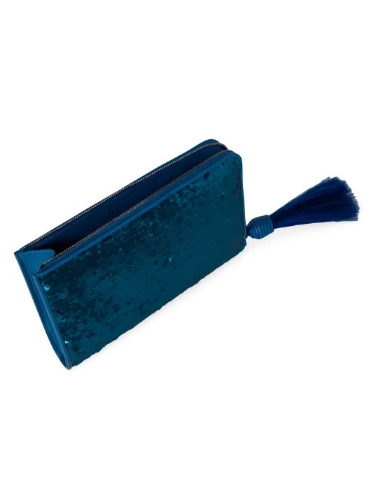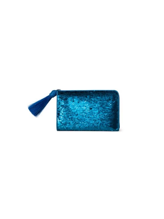 Akris punto’s Alexa zip pouch is crafted of sequins and embellished with a tassel accent.