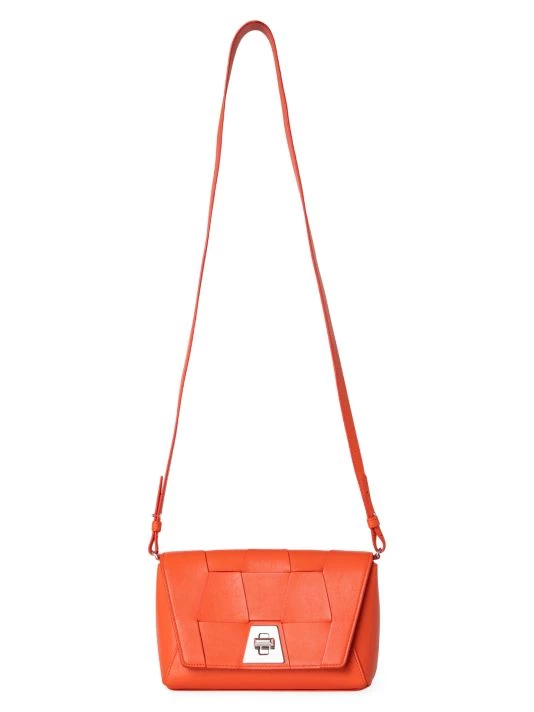 Akris punto’s Anouk day bag is crafted of woven leather with a logo-engraved turn-lock closure.