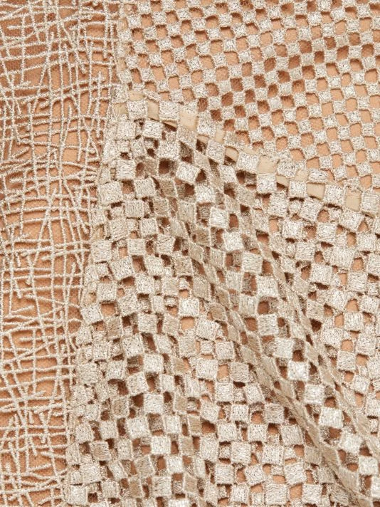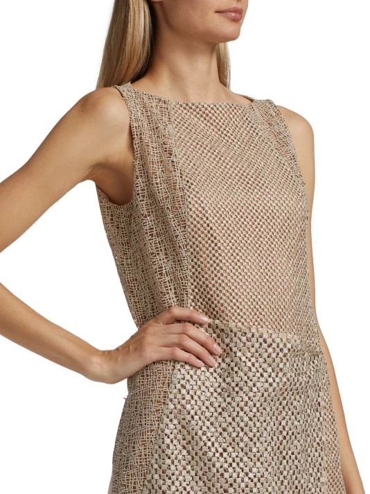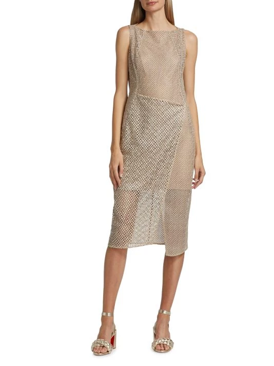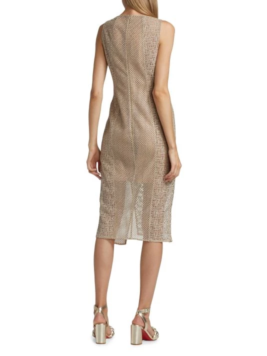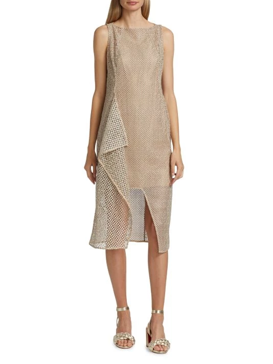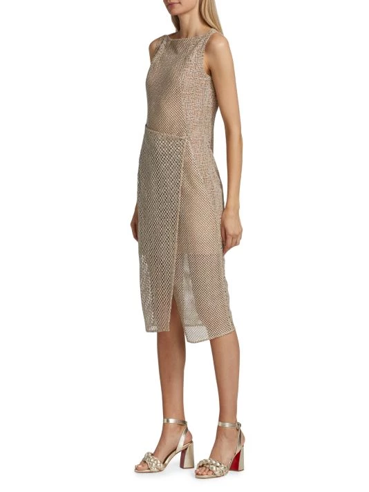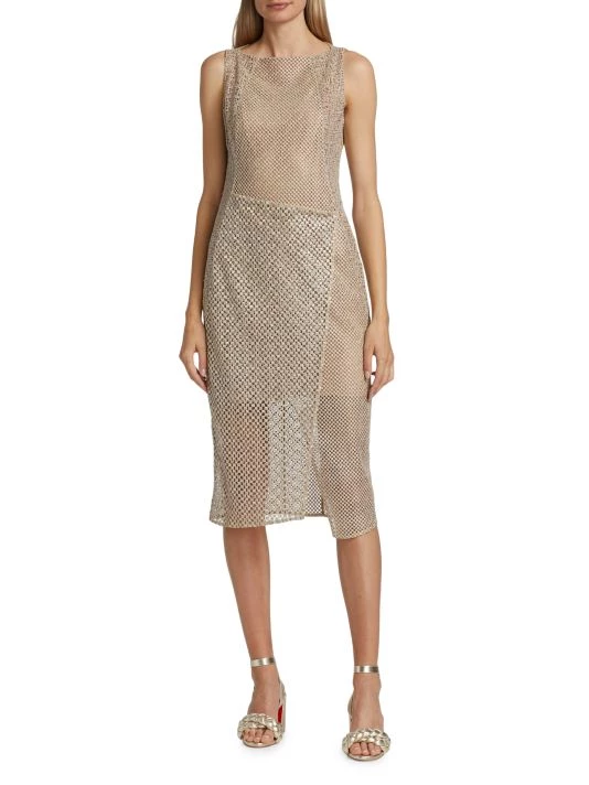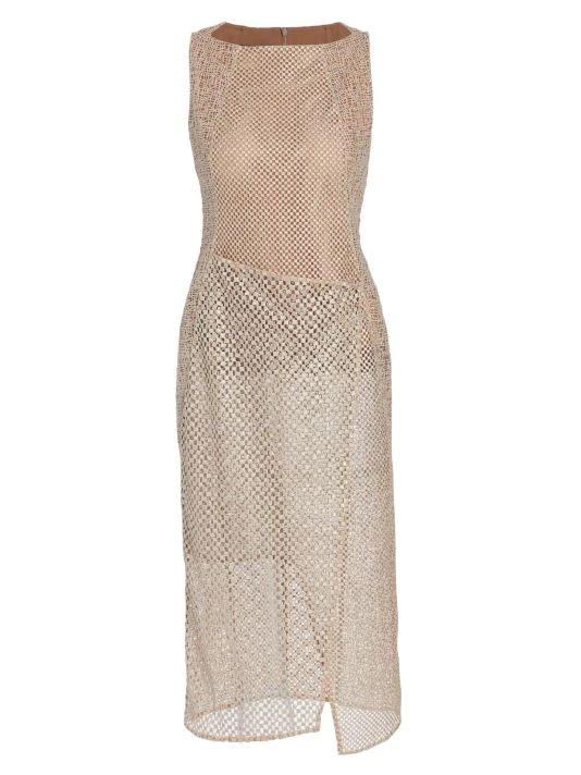 This asymmetric midi-dress boasts mixed openwork construction.