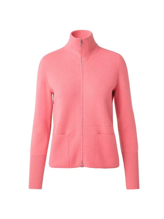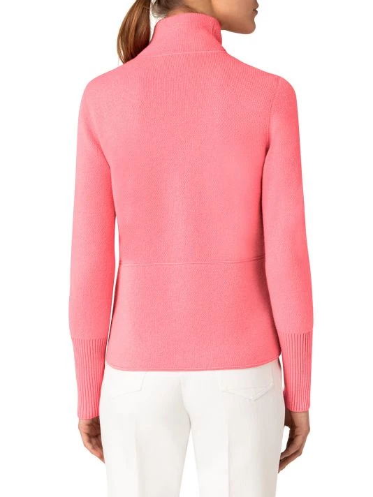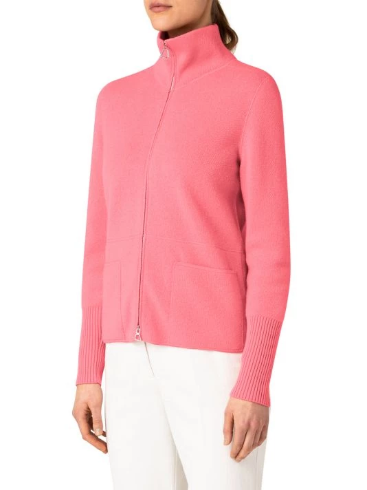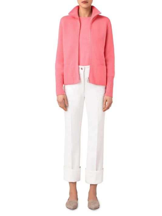 Knit from luxe cashmere, Akris’ zip-up sweater is complete with banded ribbed trim. This style’s convertible stand collar can also be worn as a spread collar.