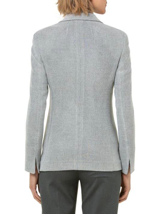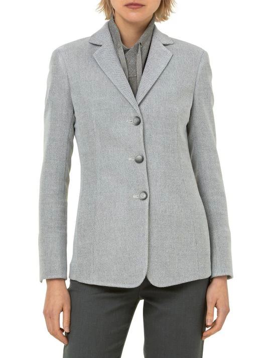 Fitted wool-blend blazer with micro, two-tone piqué stitching.