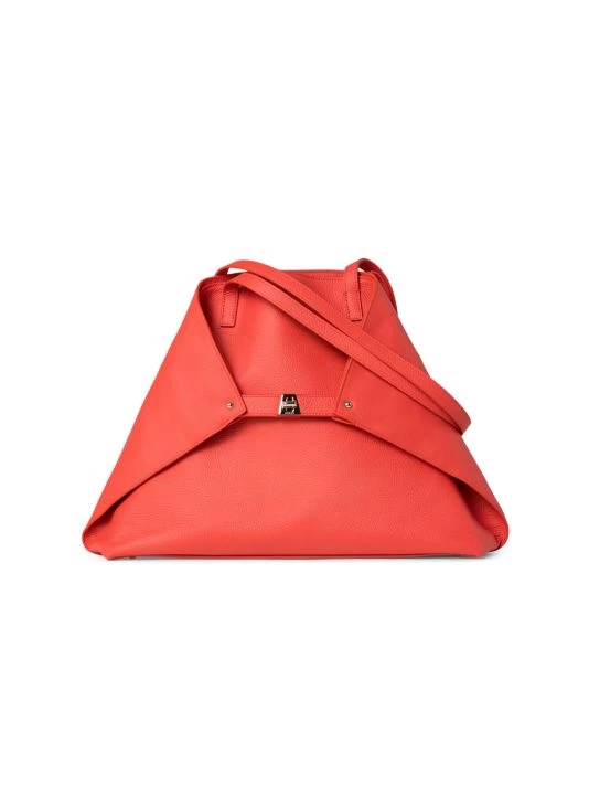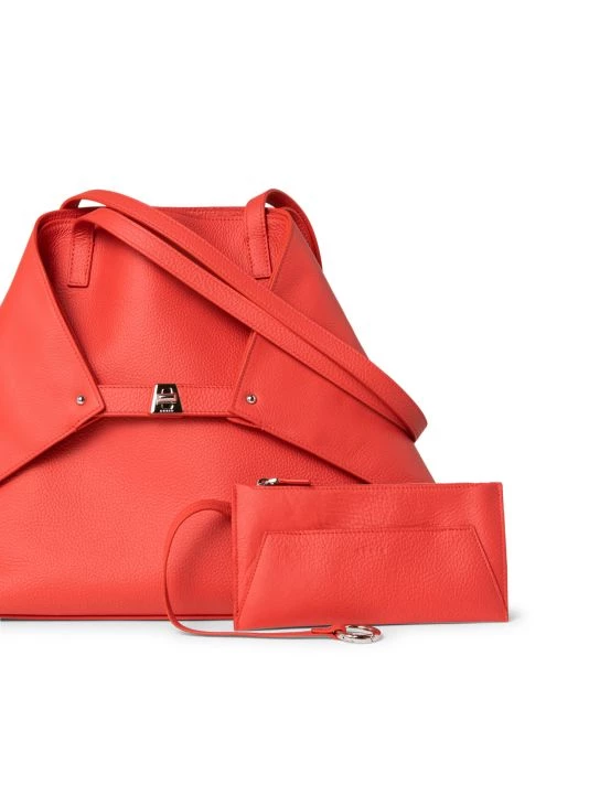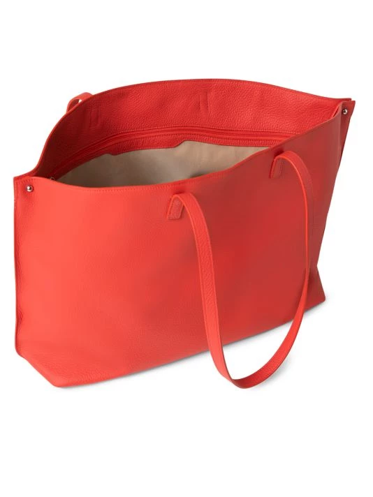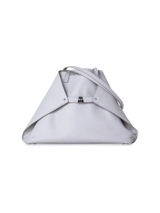 Grained calf leather constructs this convertible shoulder bag. Achieve three convertible looks: Rectangular shopper, pure trapezoid tote or signature tote.