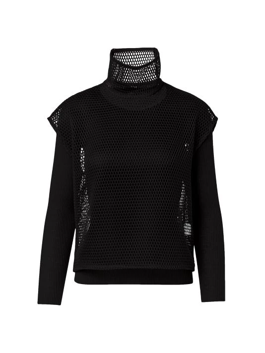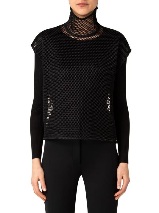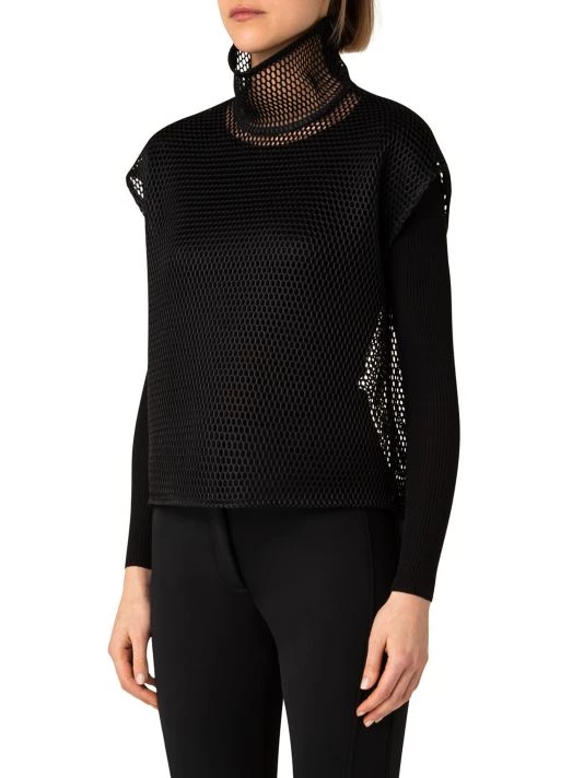 This sleek mesh top from Akris showcases a Mock turtleneck and layered design, crafted of a chic cotton-silk blend.