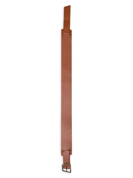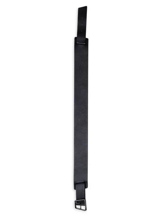 Crafted of black leather, Akris’ stylish Oblique belt secures with a polished silvertone trapezoid buckle.