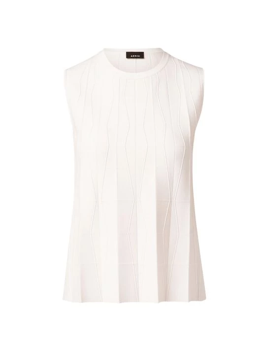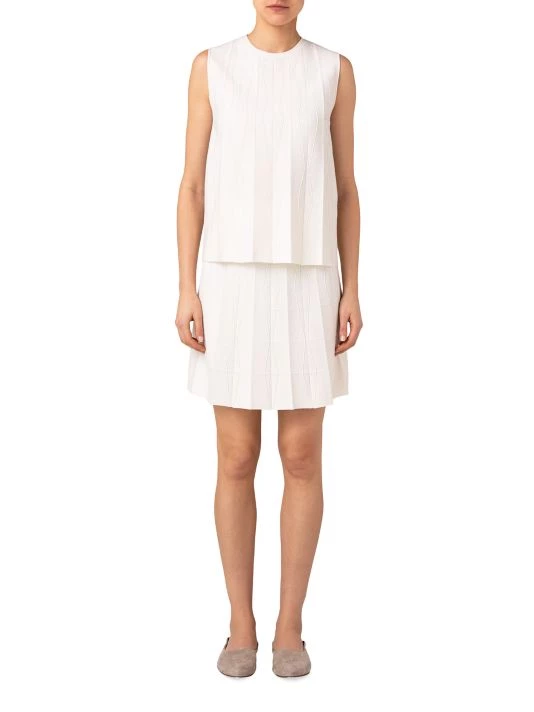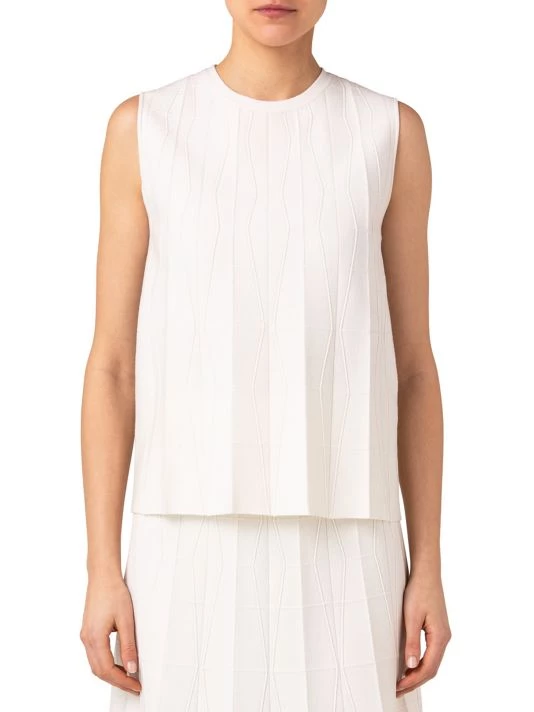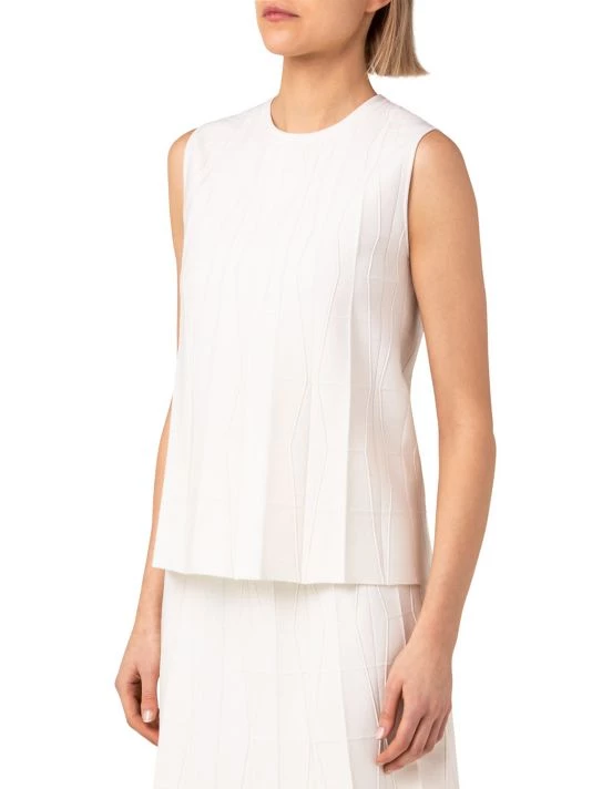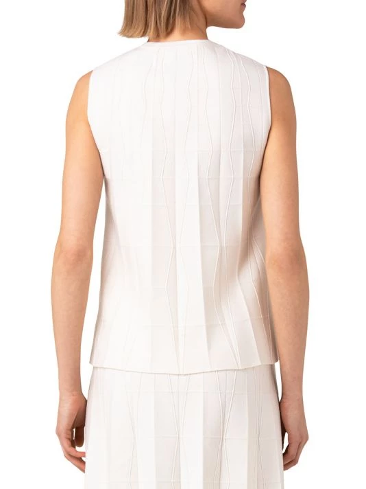 Spun from a blend of virgin wool, this A-line top features a sleeveless design enhanced by geometric linework finished in crisp accordion pleats.