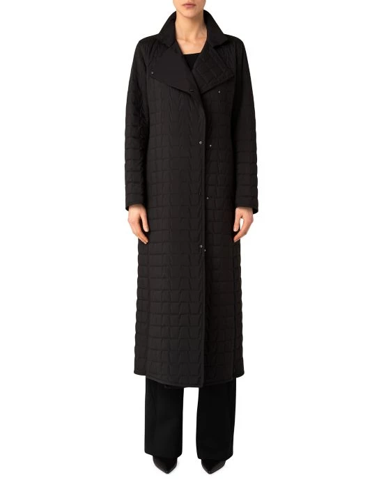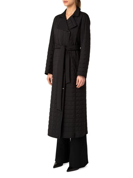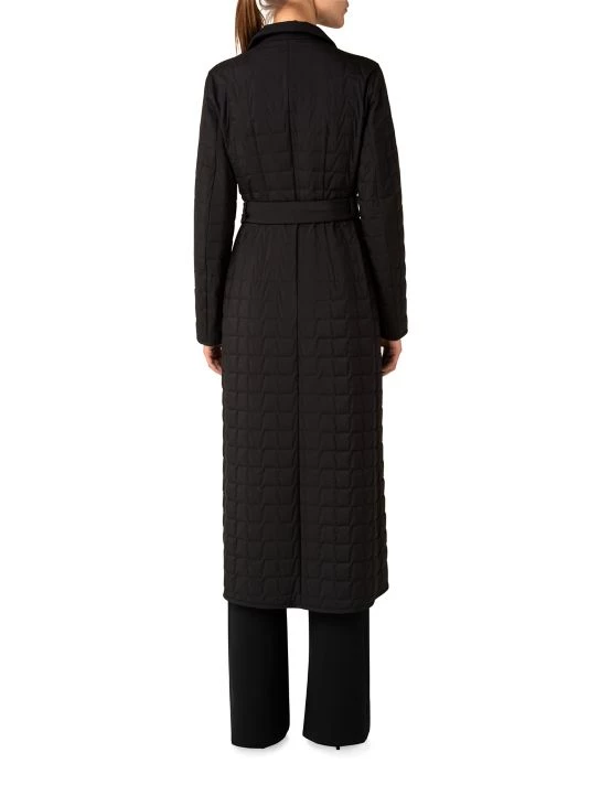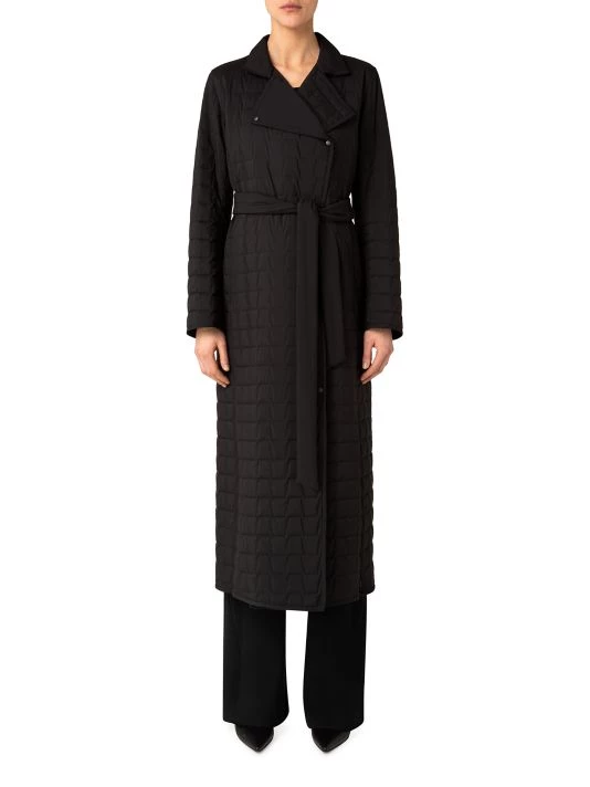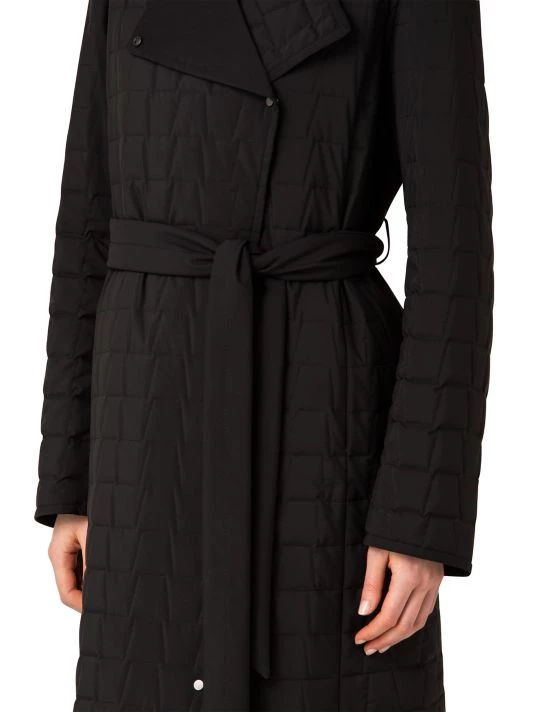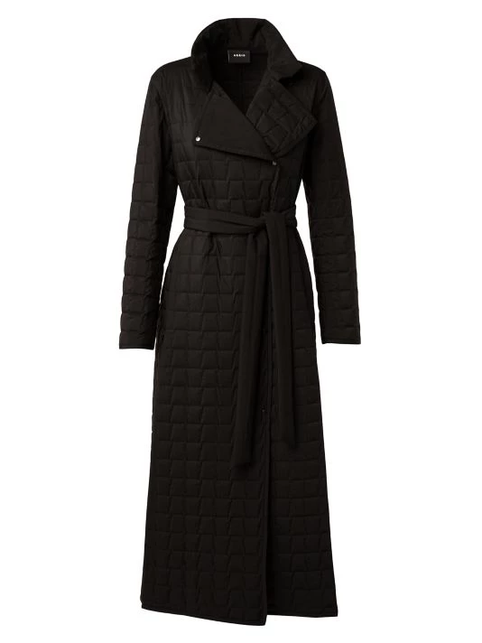 This charming trench coat is finished in a padded grid pattern, cinched at the waist with a self-tie belt.