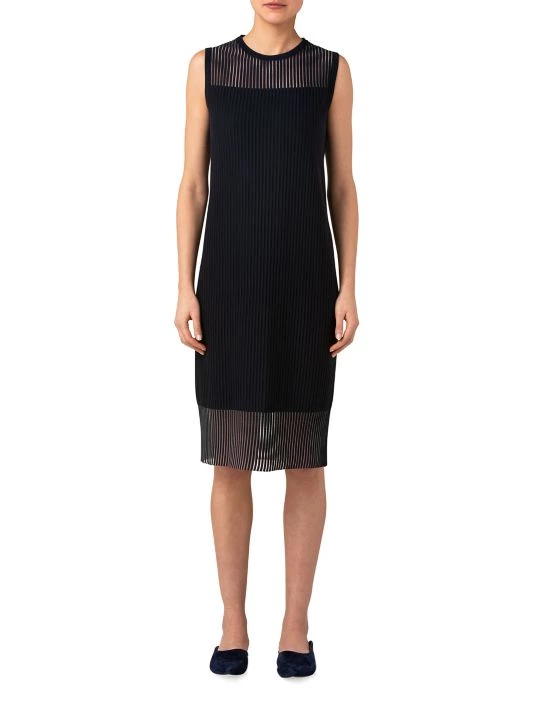 Presenting a timeless design, this Akris sleeveless midi-dress is crafted of luxurious silk and cotton. This style showcases sheer inserts at the yoke and hem, adding a modern touch.