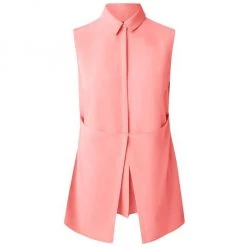 This tunic blouse is crafted of silk crepe in a sleeveless silhouette.