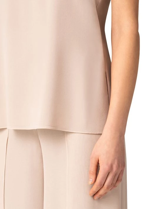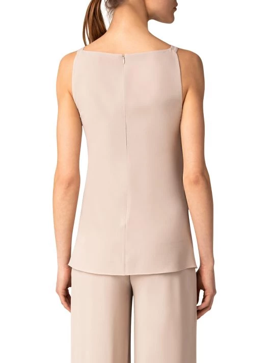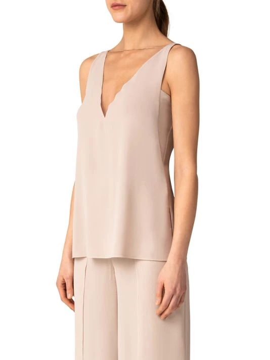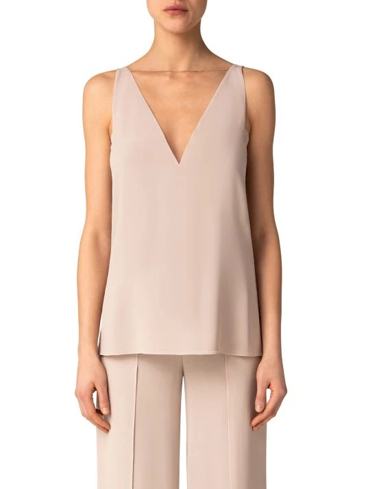 Crafted of luxe silk georgette, Akris’ sleeveless top boasts a plunging V-neck.