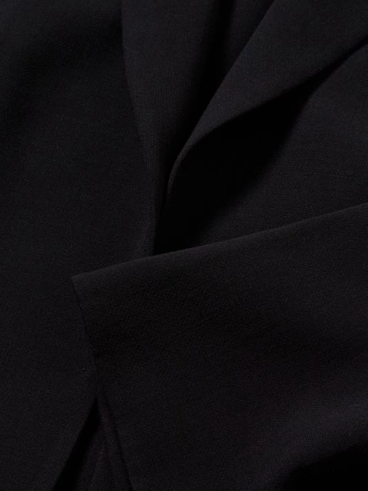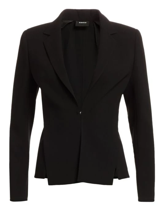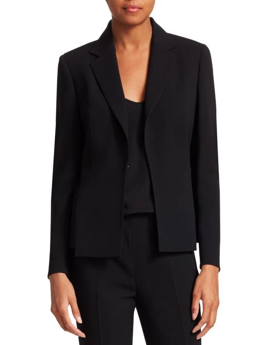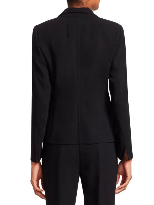 Simple lines define this essential wool blazer which is devoid of ornamentation. Slits at the cuffs and front hem are subtle feminine additions to the silhouette.