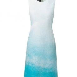 An abstract photographic print of the sky covers this tailored sheath dress, cut from a luxe blend of cotton and silk.