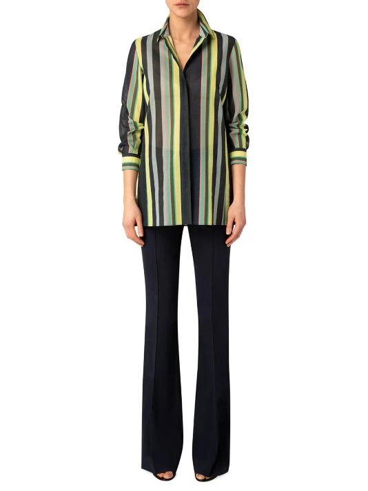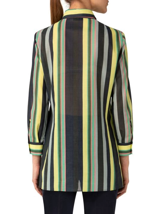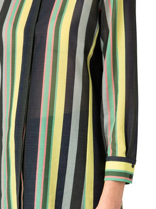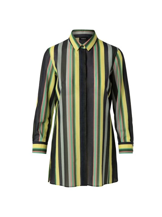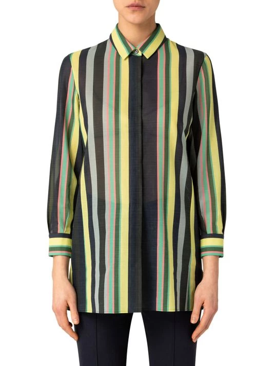 Showcasing a vibrant striped print, Akris’ cotton voile tunic blouse is designed with a point collar and concealed button placket.