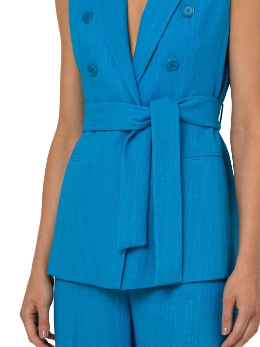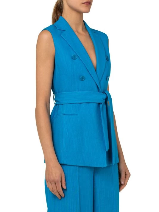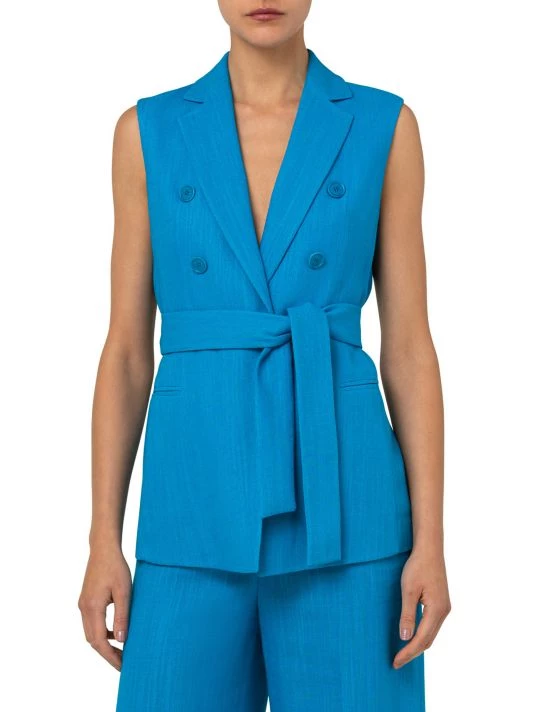 Tailored to a faux double-breasted shape from double-face linen and wool, this gilet has a polished look.