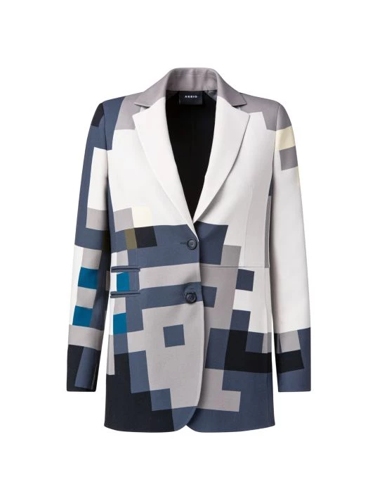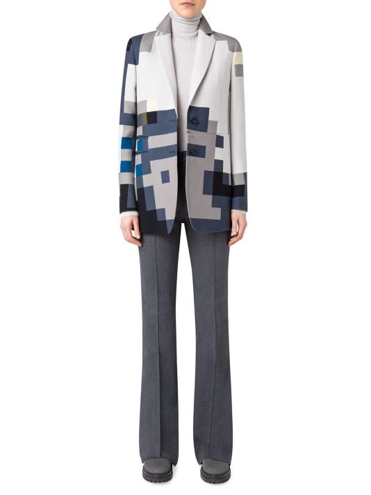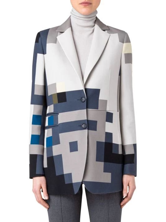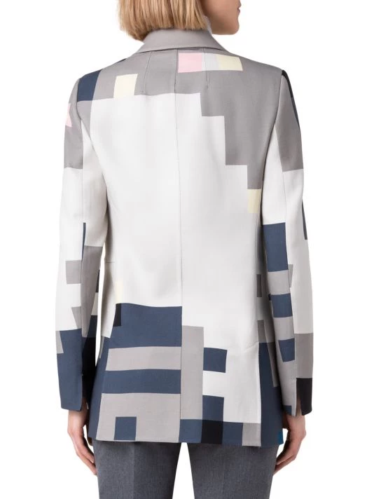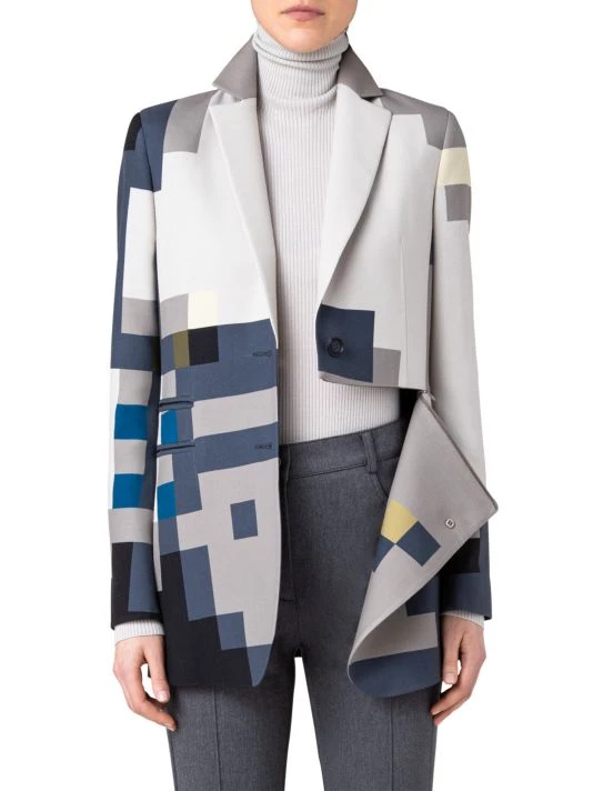 Crafted of wool, this Akris jacket is designed in a tailored silhouette with a stunning colorblocked design.