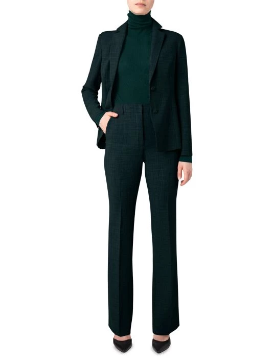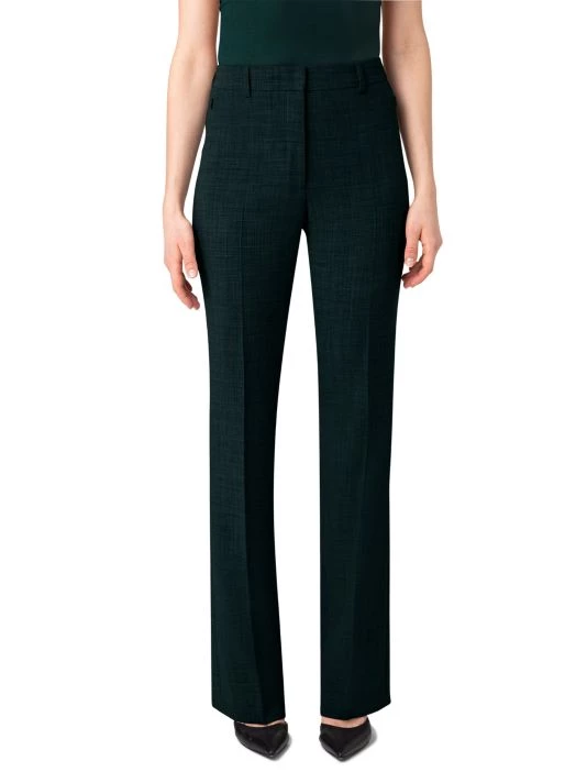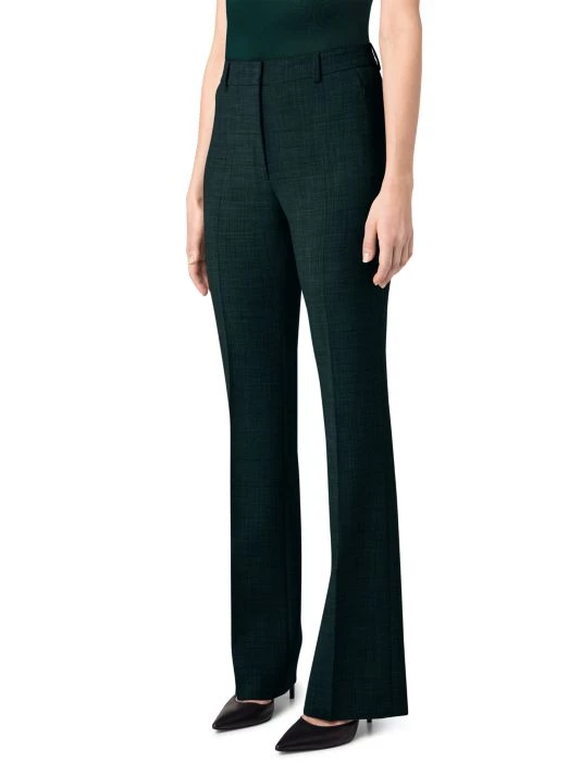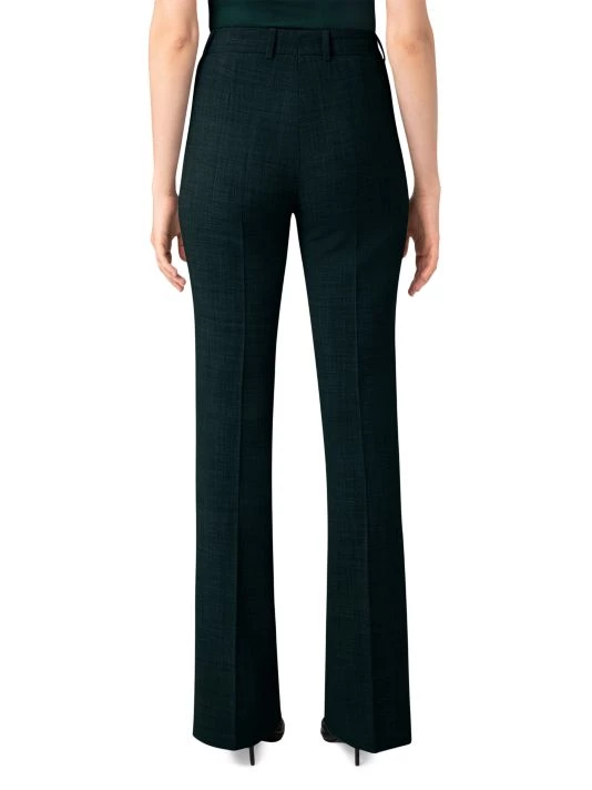 Made of wool with added stretch, these flared leg pants by Akris are finished with zipper pockets at the waist.