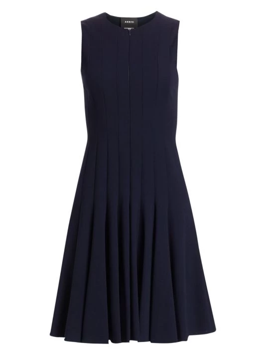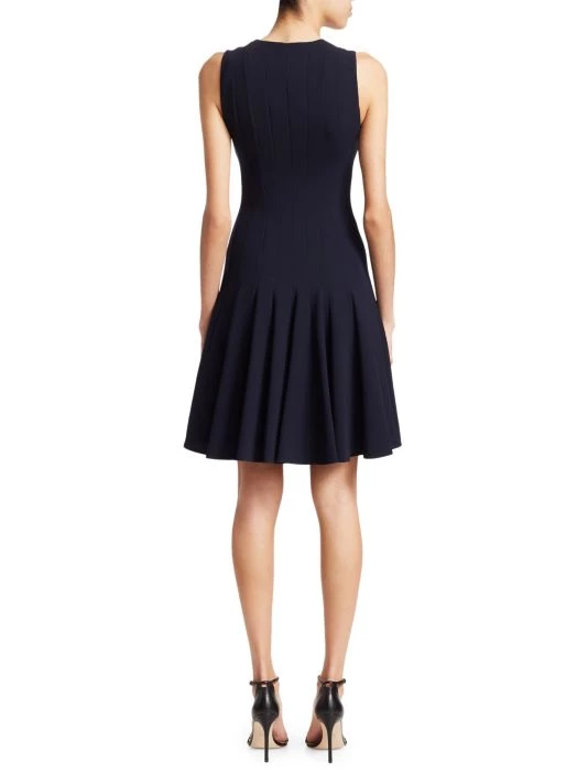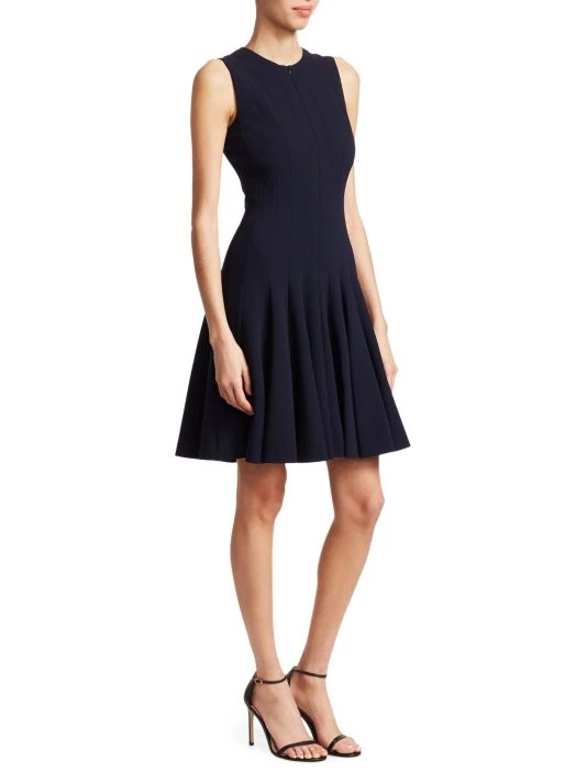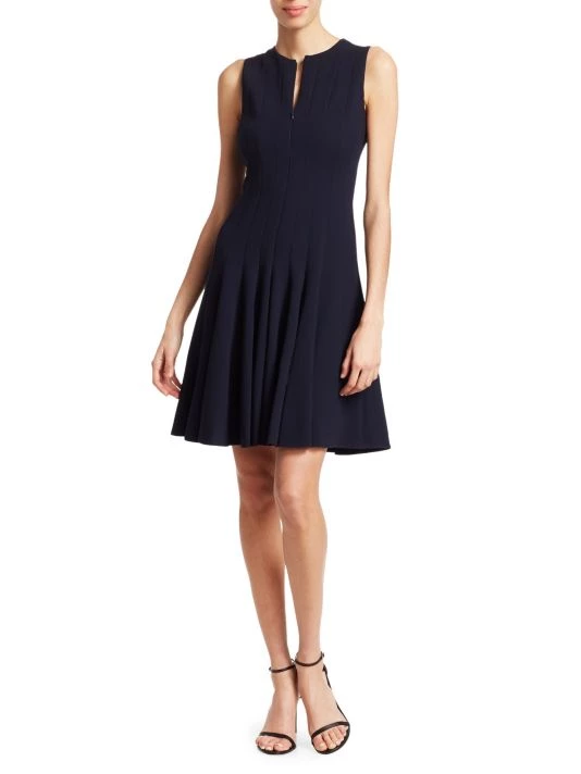 This paneled, fit-and-flare dress is fashioned with concealed zippers at neckline and shoulders, in an ingenious design that promises to provide both workday polish and evening allure.