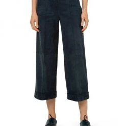 Akris Suede Wide-Leg Ankle-Crop Pants